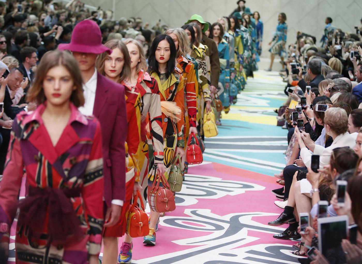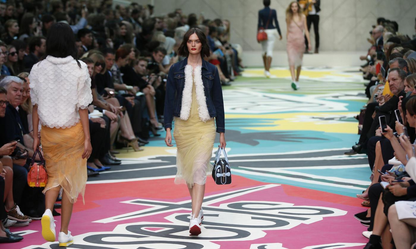 LONDRA – “Svolta colorata” nel mondo Burberry. Per la prossima primavera estate 2015, la storica casa di moda britannica propone una collezione che gioca su tinte che vanno dal giallo felce al rosa, al rosso papavero, ma anche verde pisello e blu libellula.
