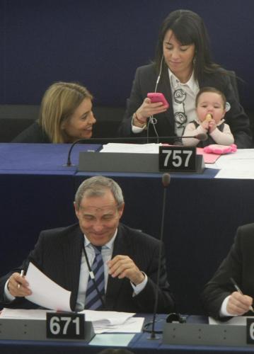 STRASBURGO – Licia Ronzulli, l’europarlamentare del Pdl, porta spesso la figlioletta Vittoria in Aula a Strasburgo e la piccola, che praticamente nel Parlamento Ue ci è cresciuta, vota anche insieme alla mamma. Oltre ad essere coccolata da tutti.