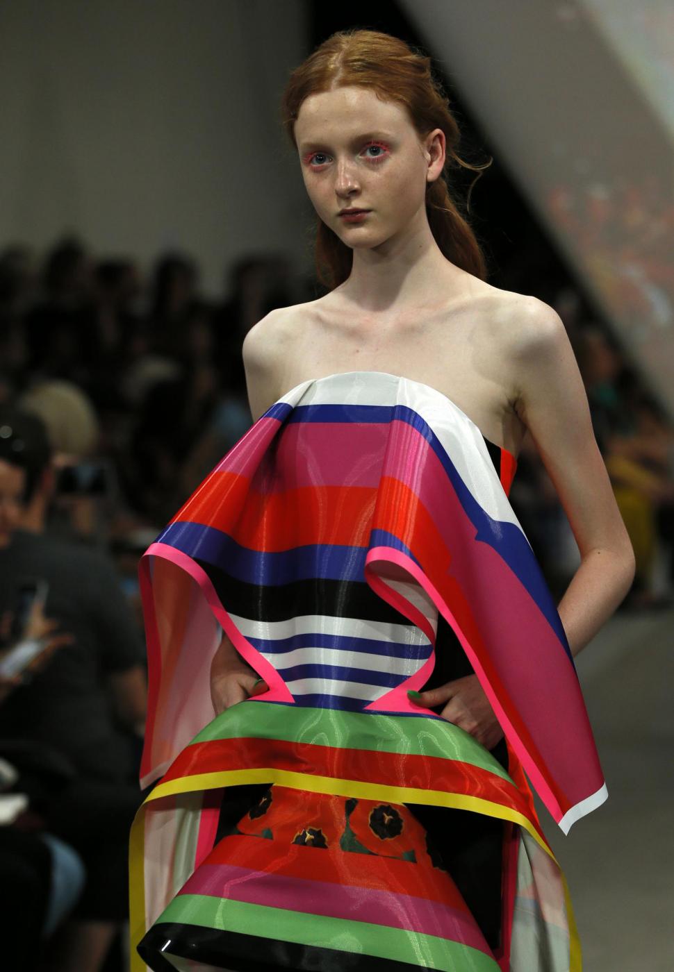 Foto: La PresseA model wears an outfit by designer Keiko Nishiyama during Fashion Scout's Spring/Summer 2015 show at London Fashion Week, at Freemasons Hall, central London, Friday, Sept. 12 2014. (Photo by Joel Ryan/Invision/AP)