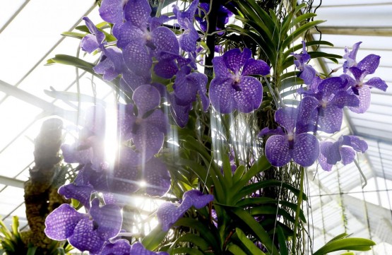 Sunlight streams through a display of orchids at Kew Royal Botanic Gardens in London, Thursday, Feb. 7, 2013. Over 4,500 orchids are being displayed for an Orchid festival as well as 550 bromeliads and 350 assorted foliage plants. (AP Photo/Kirsty Wigglesworth)
