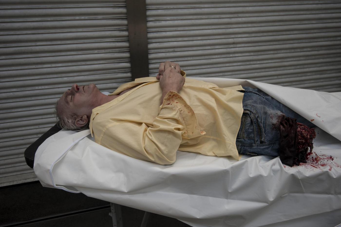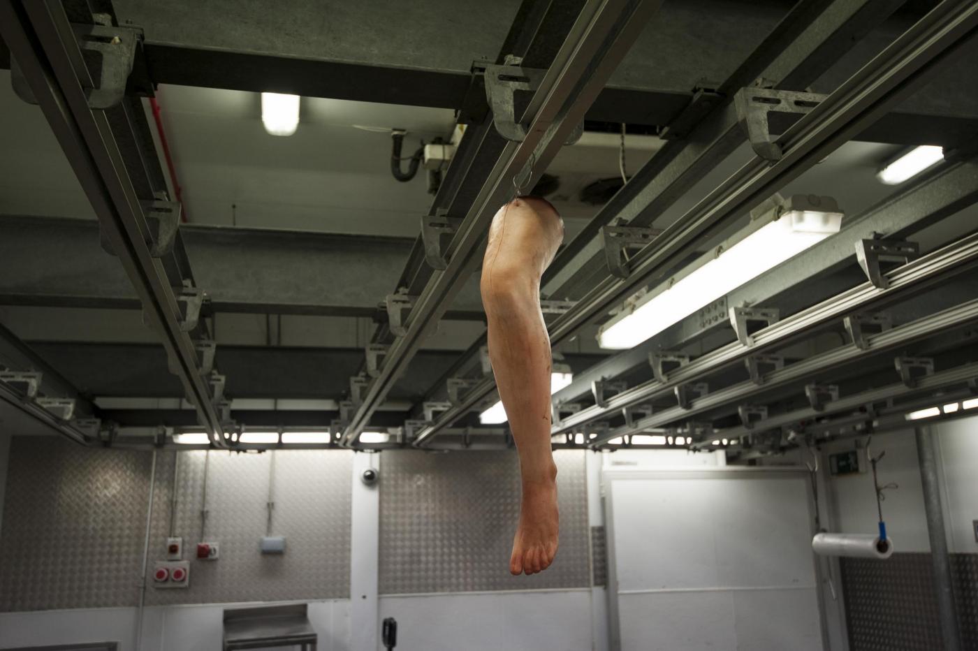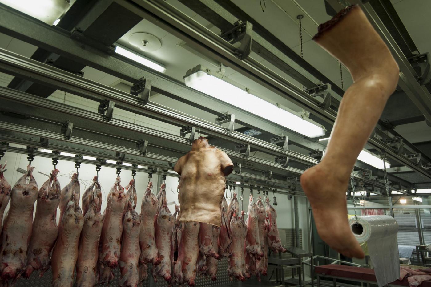 Nella macelleria, le massaie britanniche possono acquistare tagli di carne umana. Come si vede nella galleria, esposti sul bancone ci sono mani, lingue, dita, occhi, ed anche un intero corpo umano ricreato con bacon e salsicce. Ovviamente, dato che vendere carne umana è proibito, per chi non lo avesse capito si tratta solo di arte e pubblicità (foto Ap/LaPresse)