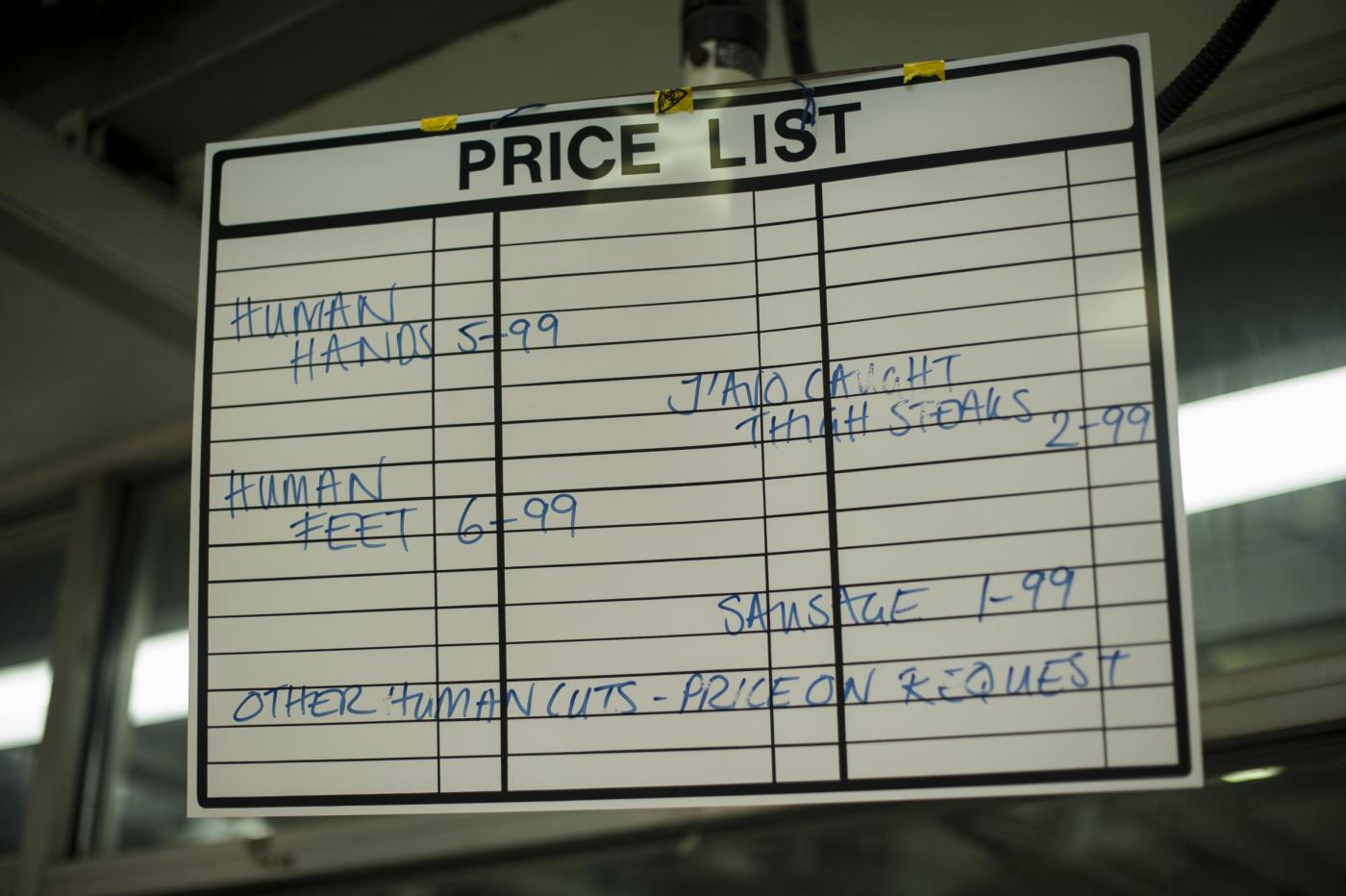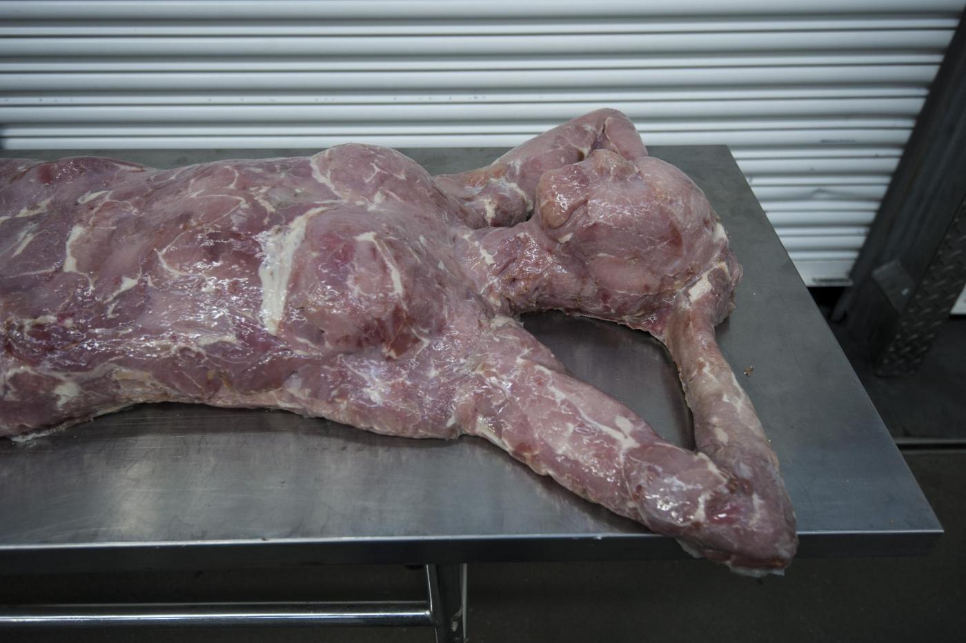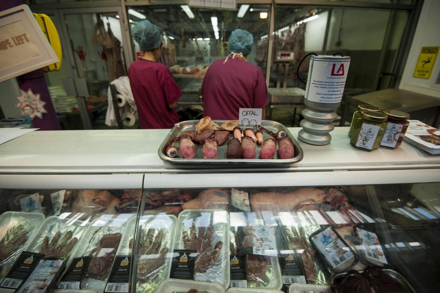 'Human butchery' meat products on sale at the pop-up 'Wesker & Son' shop, created by artist Sharon Baker.