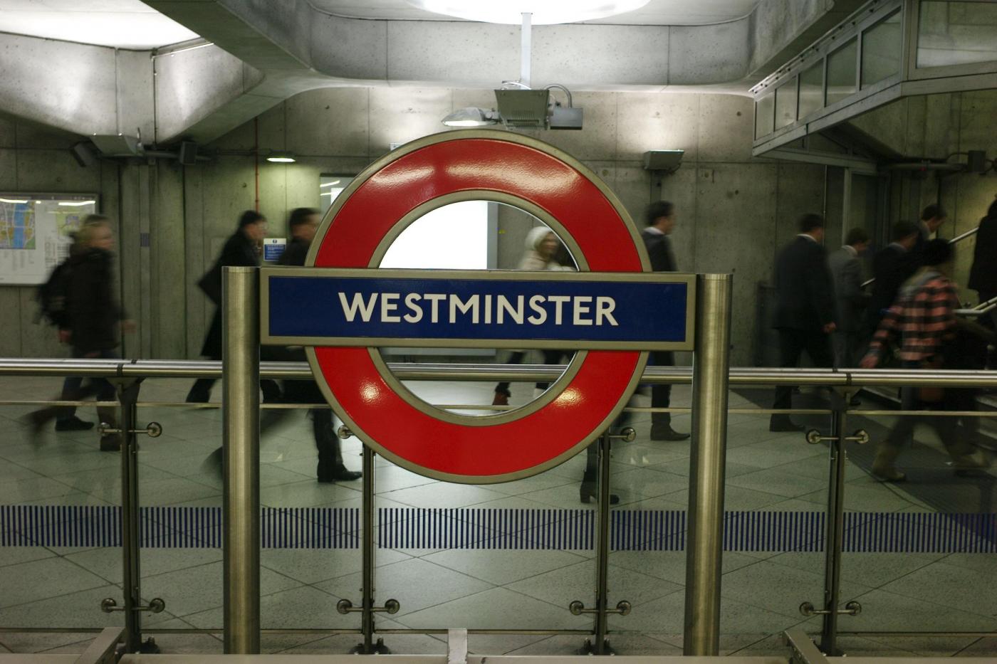 Jan. 8, 2013 - London, London, UK - London, UK. Passengers walk by an underground sign at Westminster underground station in London, Tuesday, Jan. 8, 2013. London Underground mark its 150 year anniversary on 9 January. In 1863 January 9 the world first underground train entered into public service. LaPresse