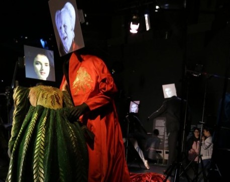 Two costumes made for the 1992 film Bram Stoker's Dracula, by designer Eiko Ishioka, showing a dress worn by the characters Mina Murray/ Elizabeth played actress Winona Ryder and the red cape worn by Count Dracula played by actor Gary Oldman on display at the Hollywood Costume exhibition at the Victoria and Albert museum in London, Tuesday, Oct. 16, 2012. The show at the Victoria and Albert Museum showcases more than one hundred movie costumes from a century of film-making. The exhibition opens to the public on Oct. 20, 2012 and run till 27 Jan. 2013.