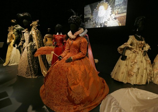 A selection of costumes showing various designs and outfits worn by actress playing royal and regal characters seen at the Hollywood Costume exhibition at the Victoria and Albert museum in London, Tuesday, Oct. 16, 2012. The show at the Victoria and Albert Museum showcases more than one hundred movie costumes from a century of film-making. The exhibition opens to the public on Oct. 20, 2012 and run till 27 Jan. 2013.