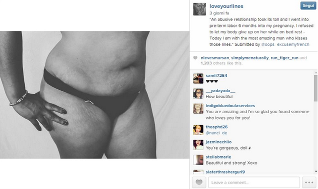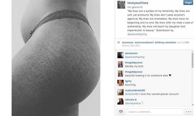 E così ora migliaia di donne hanno la possibilità di condividere tramite Instagram i propri scatti online per dimostrare che la bellezza del corpo è anche questo .L’hashtag. per chi fosse interessata è #Loveyourlines: