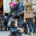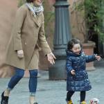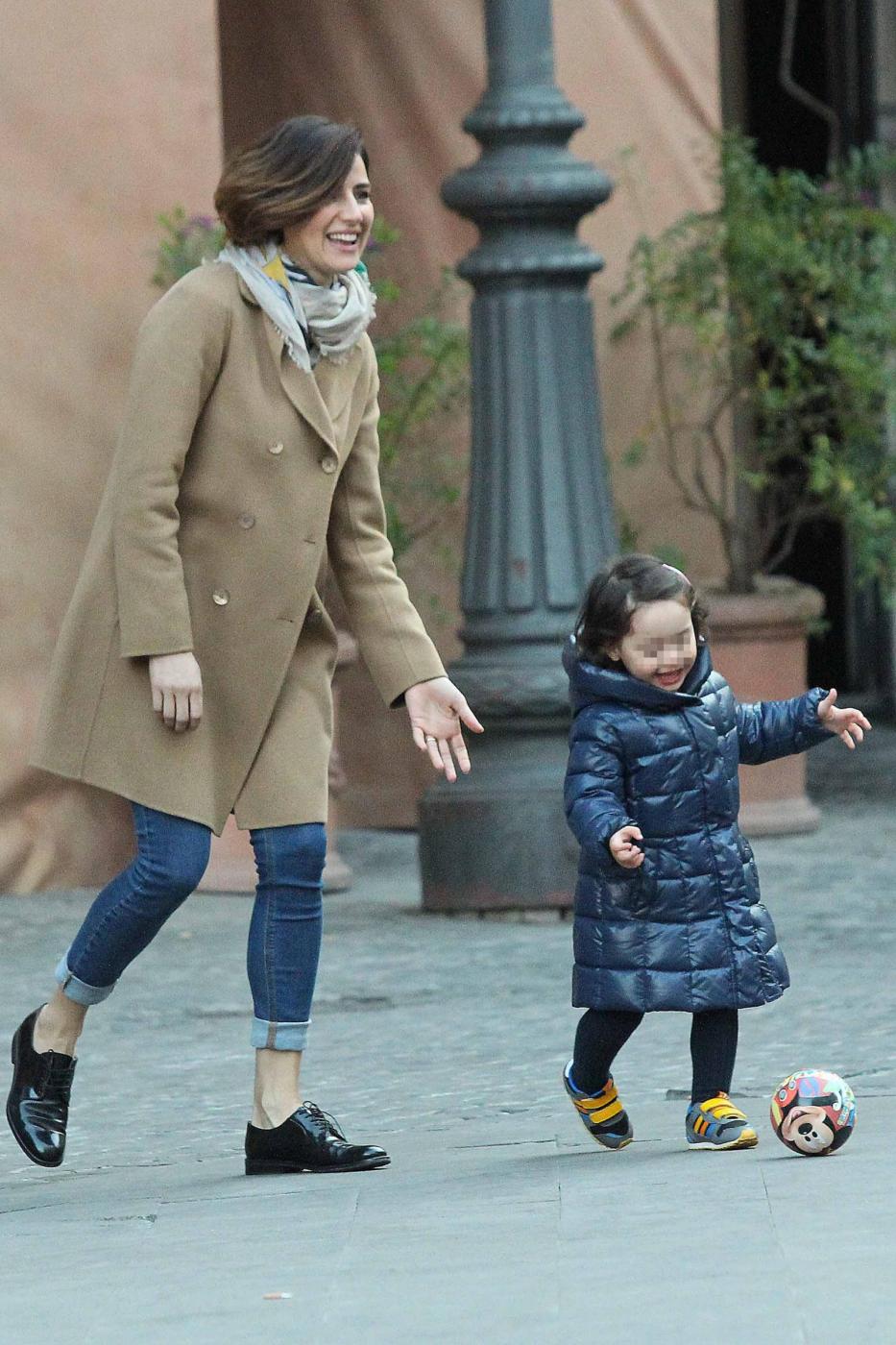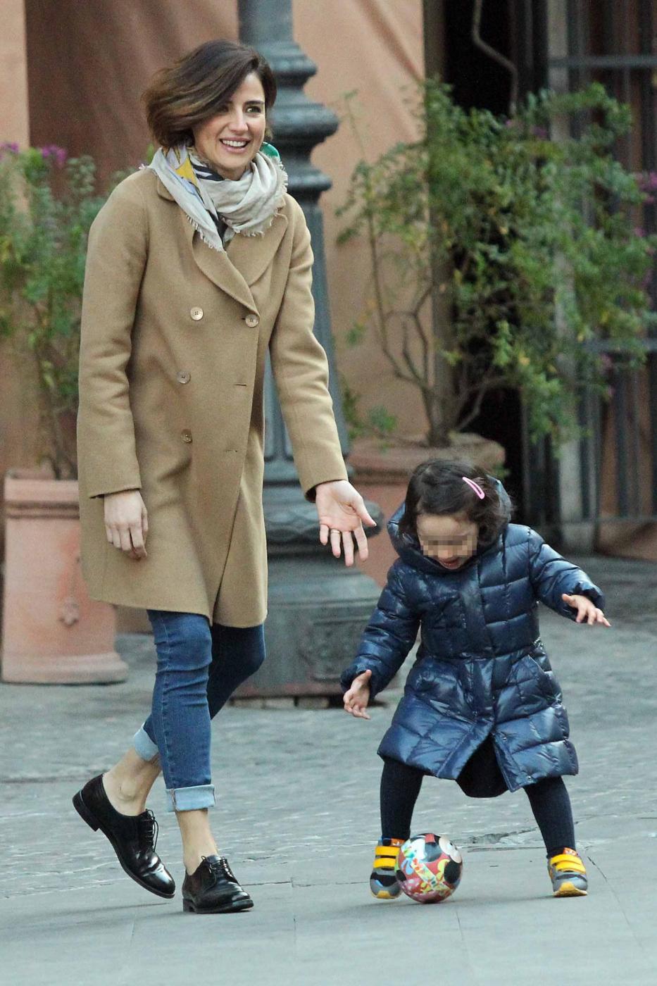 L’attrice, moglie di Luza Zingaretti, era in centro a Roma per una passeggiata con la figlia Emma, due anni. La piccola non resiste e gioca a palla in piazza, alla mamma il compito di rincorrerla per evitare che si faccia male. (Foto Lapresse).