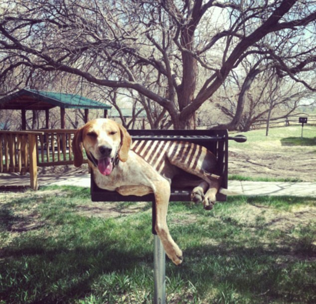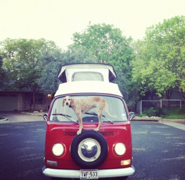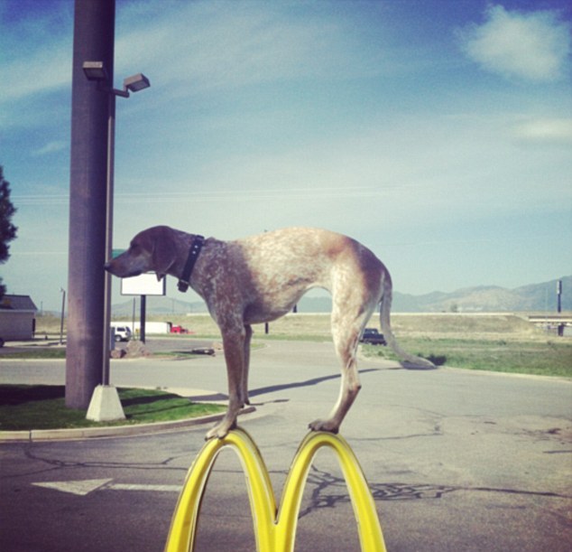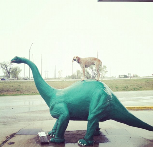 Al momento i due compagni di viaggio hanno già percorso oltre 46mila miglia, e in questo viaggio Theron ha scattato cento foto della sua cagnolina in pose quanto meno bizzarre.