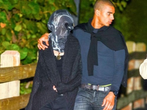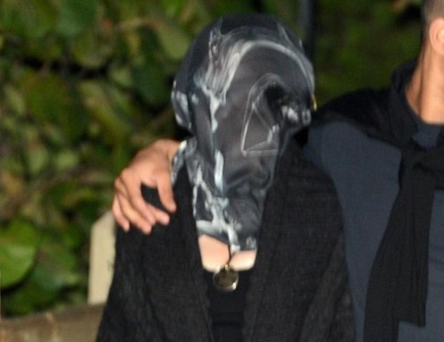 Madonna viene “scortata” dal suo tyo boy: probabilmnte per non essere riconosciuta, Miss Ciccone ha infatti la faccia coperta da un velo nero (foto Ap/LaPresse)