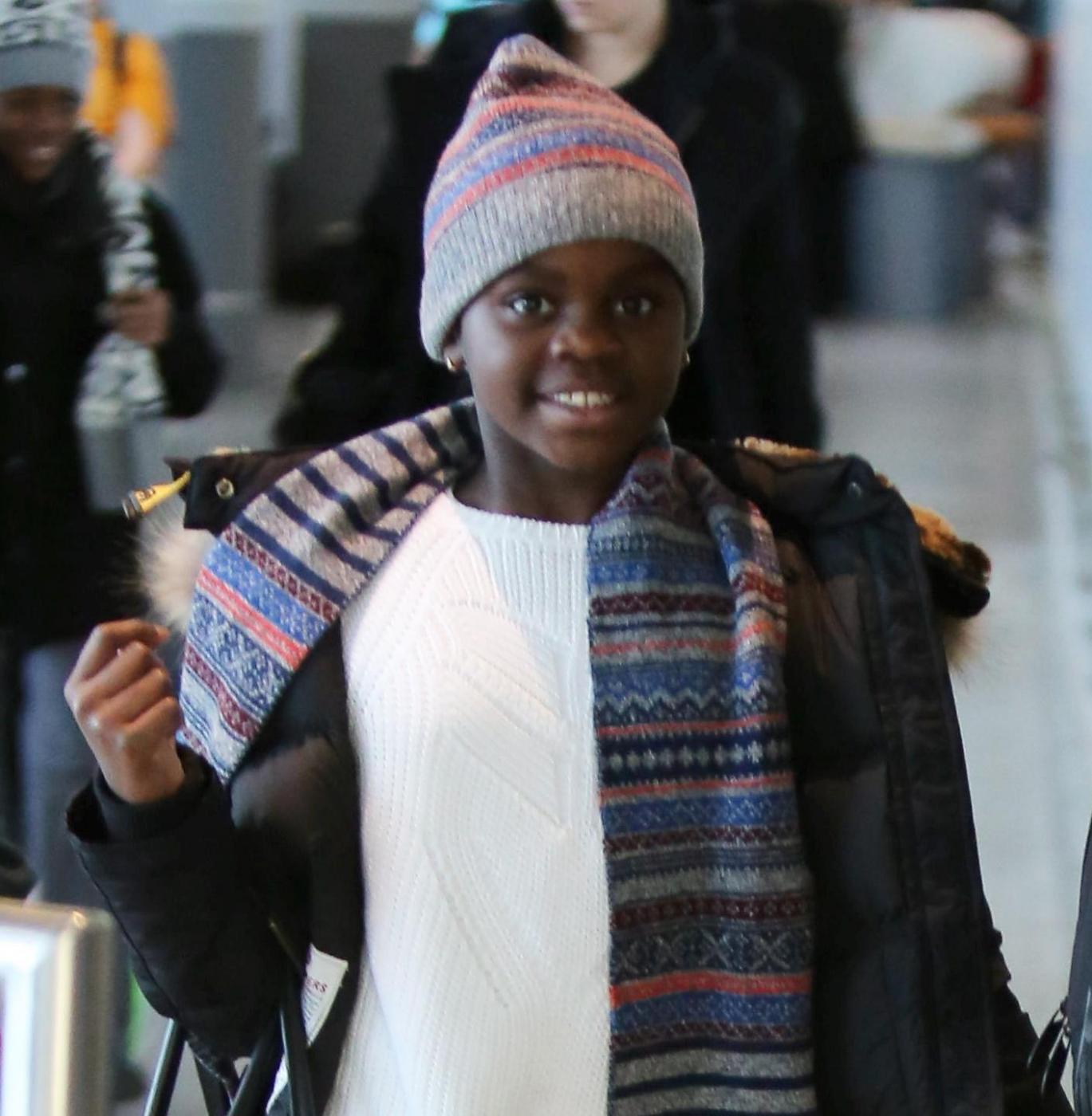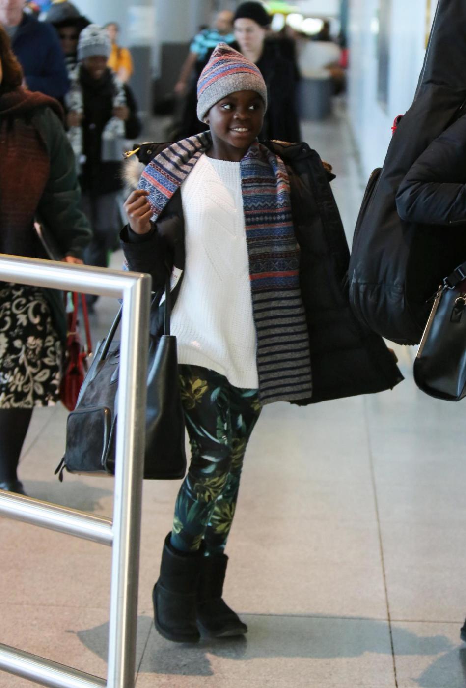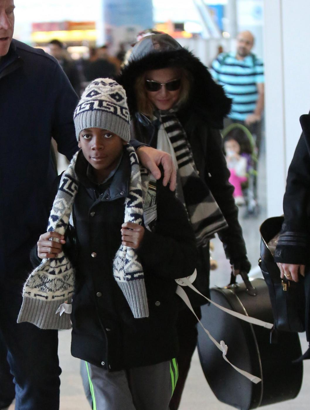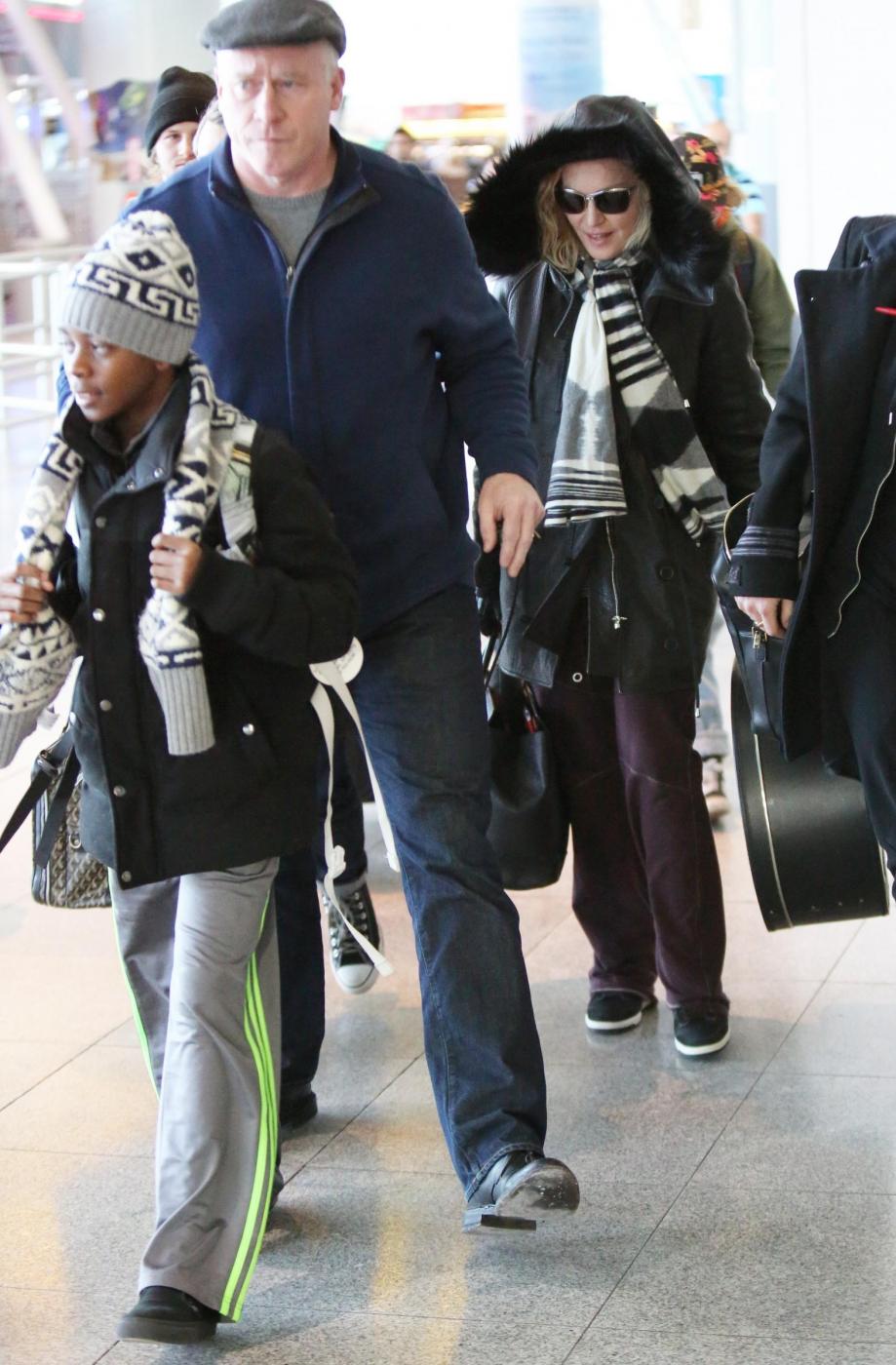 L'arrivo all'aeroporto Madonna con i figli David e Mercy Madonna with son David and daughter Mercy who both are really loving the attention from photographers at JFK airport in NYC. X17online.comLaPresse -- Only Italy