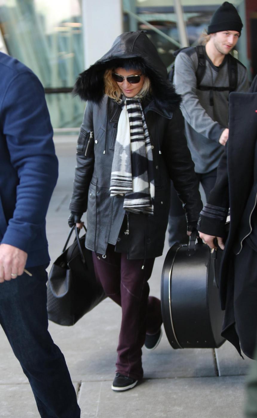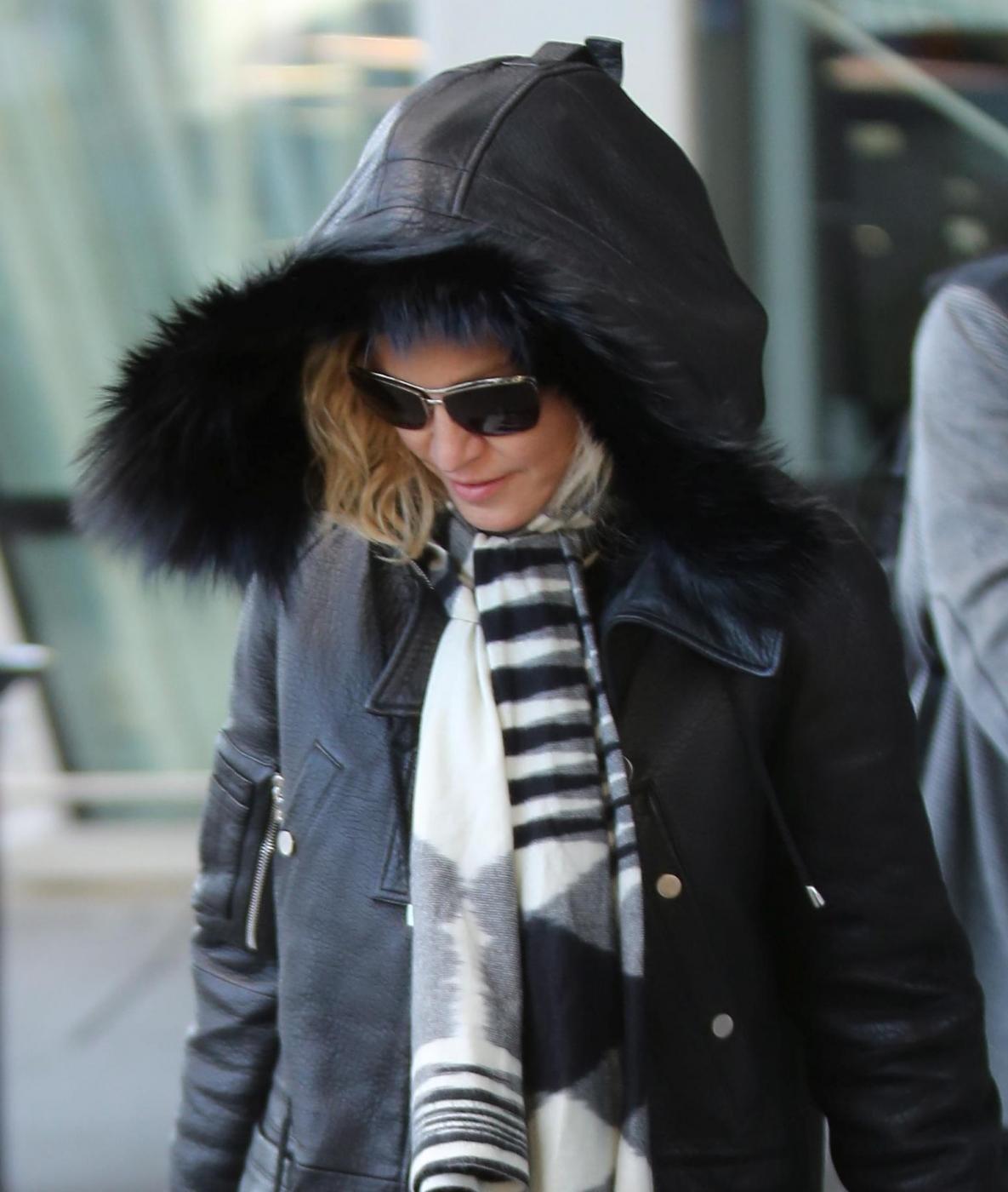 Come una spia in incognito si è presentata Madonna all’aroporto Jfk di New York, insieme ai figli David e Rocco e alla figlia Mercy. La famiglia è appena tornata dalla settimana bianca in Svizzera, a Gstaad, località sciistica preferita da molti vip: tra gli altri Emanuele Filiberto e la moglie Clotilde, che ne hanno fatto la meta preferita di molte loro vacanze. Al ritorno in patria Madonna cerca di evitare i fotografi e si nasconde nei vestiti, mentre i figli non sembrano disdegnare le attenzioni dei paparazzi.