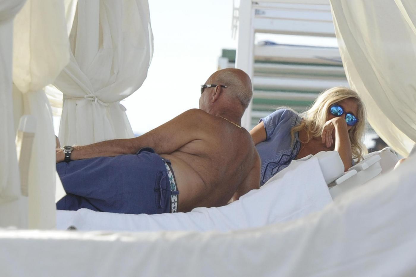 Per lui costume floreale sui toni del rosa, ma non c’è modello che tenga, lo scatto di profilo è impietoso per la dolce metà della Venier, che però lo guarda con gli occhi dell’amore. Per una passeggiata sul bagnasciuga, lei in un morbido caftano celeste in pendant con la tshirt di Nicola, sempre vicini o mano nella mano (foto LaPresse)