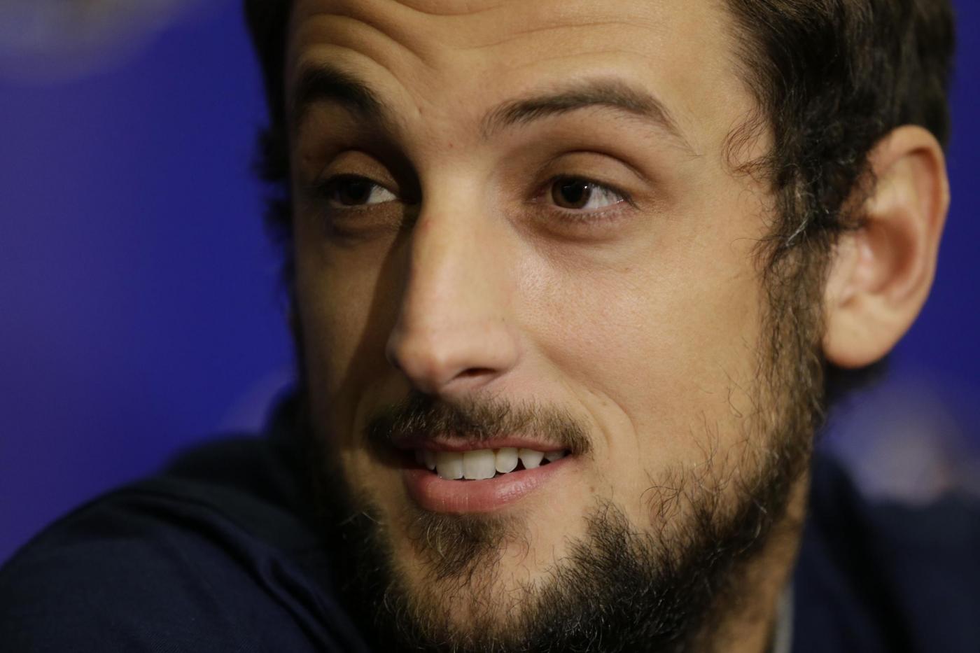 San Antonio Spurs' Marco Belinelli speaks during the NBA All Star basketball news conference, Friday, Feb. 14, 2014, in New Orleans. The 63rd annual NBA All Star game will be played Sunday in New Orleans. (AP Photo/Gerald Herbert)