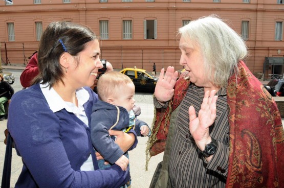 La donna è stata raggiunta da decine di giornalisti che a Buenos Aires l’hanno raggiunta fuori dalla sua casa. Lei, anziana, ha i capelli bianchi e il volto paffuto. Una bambina le porge un bigliettino e lei ride.