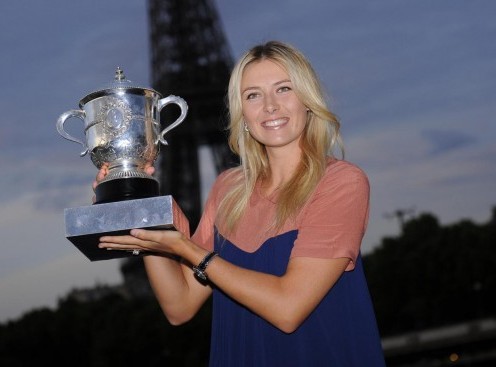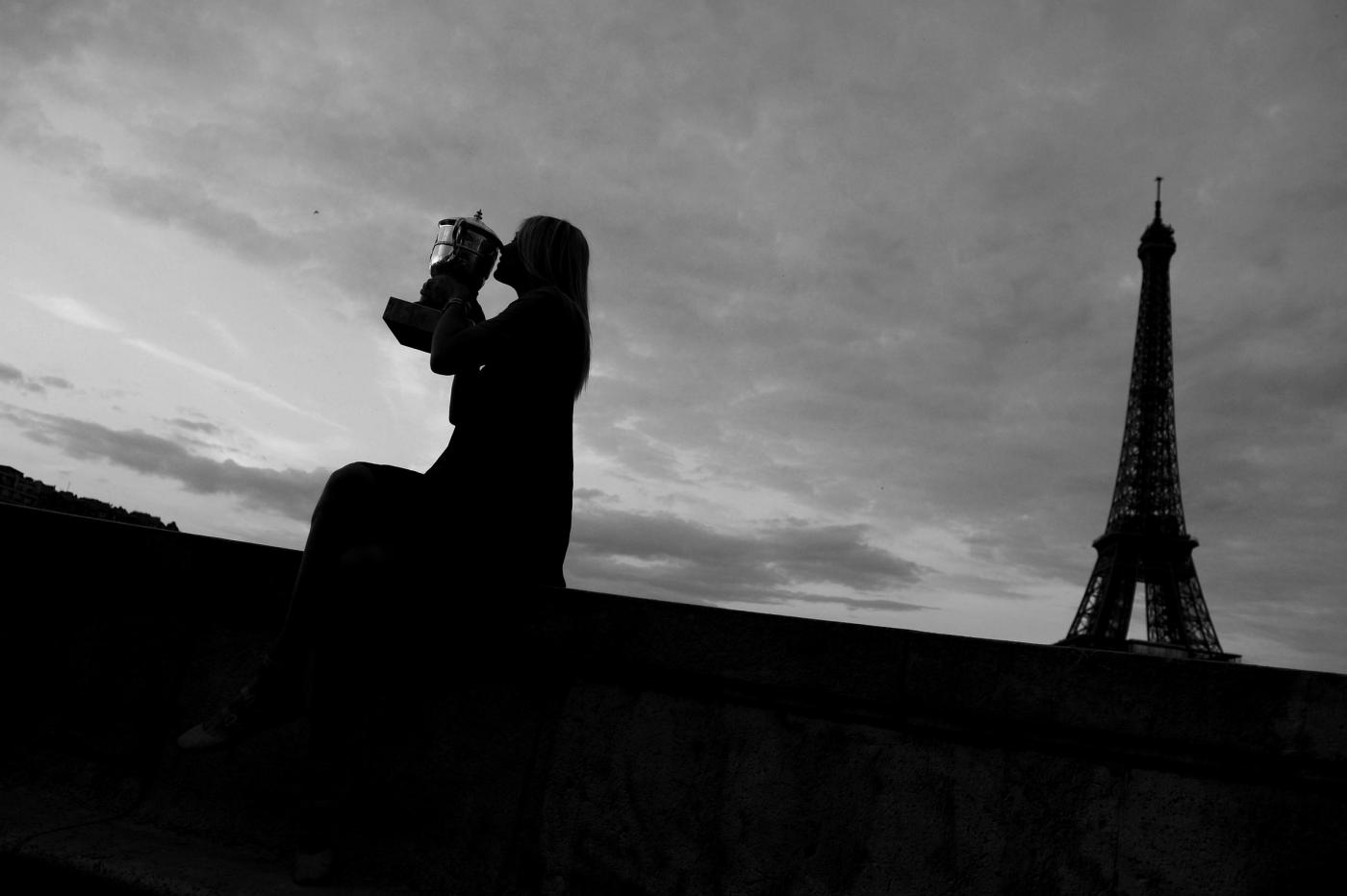 Maria Sharapova alla Tour Eiffel con la coppa del Roland Garros