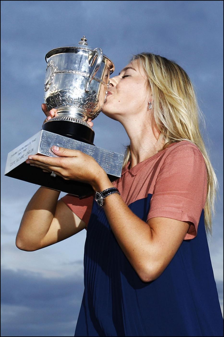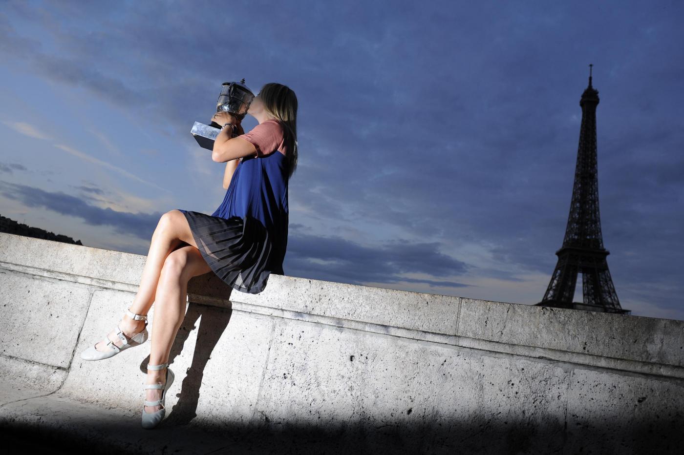 PARIGI – Dopo essere uscita vittoriosa dal campo del Roland Garros, Maria Sharapova ha posato con la coppa, sotto la Tour Eiffel (foto Ap/LaPresse):