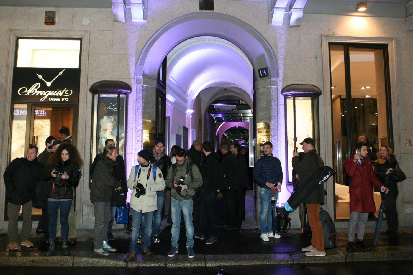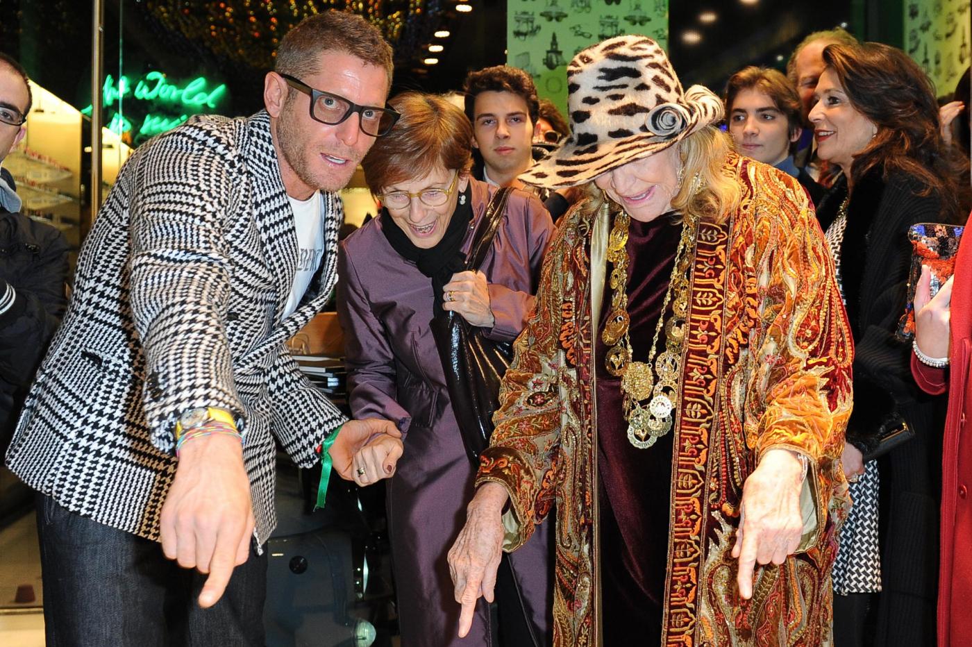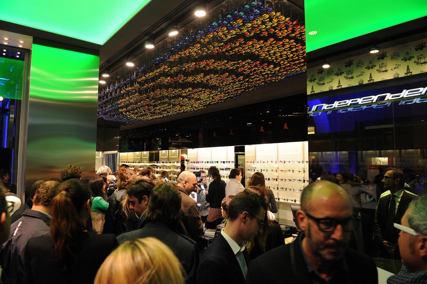 Moltissime le personalità del mondo della finanza, della moda e dello spettacolo che hanno partecipato all’opening del nuovo spazio: la direttrice di Vogue Franca Sozzani ha voluto provare tutti i modelli esposti. Marta Marzotto, elegantissima in cappotto damascato e colbacco, è stata accompagnata da Lapo Elkann nella visita del negozio e si è fatta fotografare con tanto di occhiali in velluto fucsia.