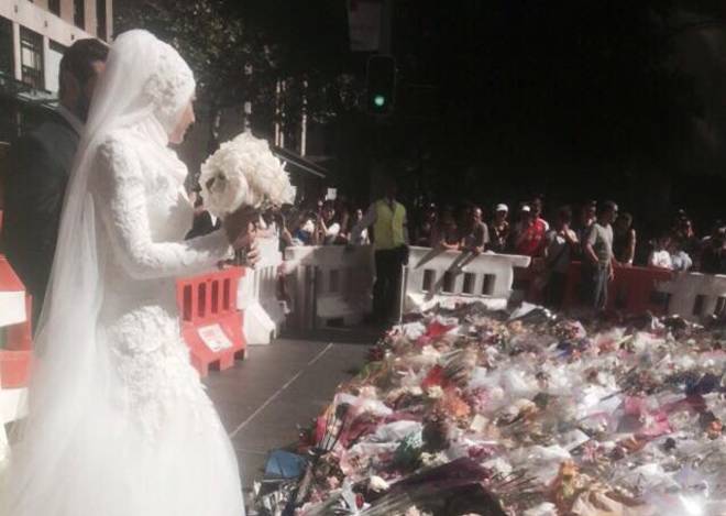 SYDNEY – Una sposa musulmana è stata sommersa dagli applausi per aver donato il suo bouquet alle migliaia di fiori lasciato in Martin Place a Sydney, nell’altarino improvvisato per omaggiare le vittime del sequestro alla cioccolateria Lindt in cui hanno perso la vita due ostaggi.
