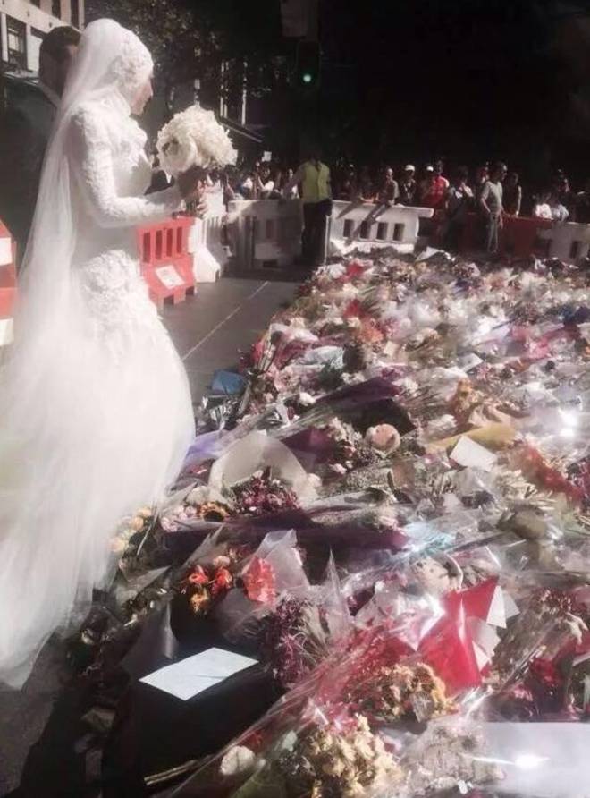 Massacro Sydney, sposa musulmana dona bouquet alle vittime03