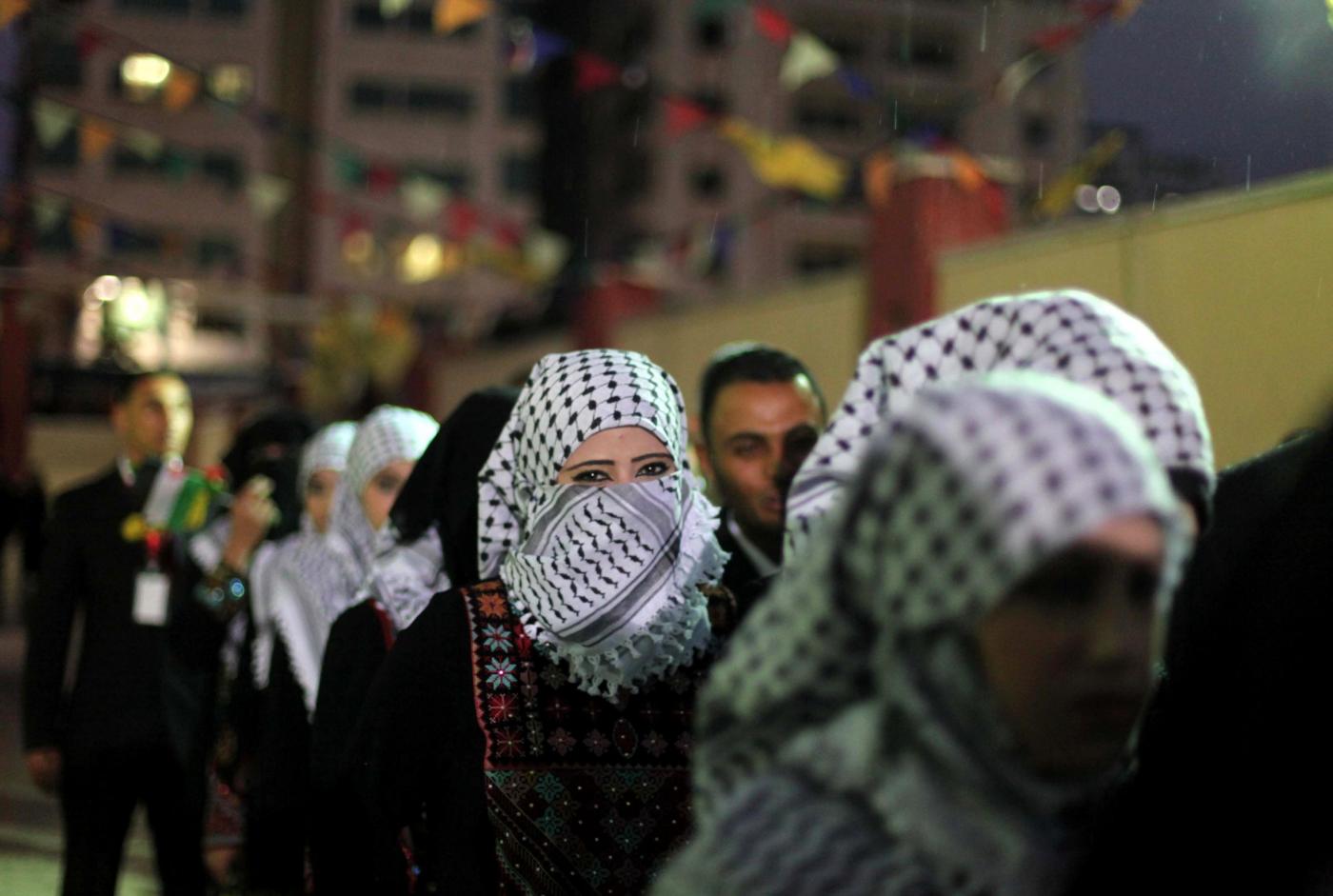 E la corsa alle nozze finanziate sta diventando una gara tra Hamas e il governo palestinese. Sei mesi fa, l’organizzazione integralista, in quell’occasione ha regalato 2mila dollari a ciascuna delle 240 coppie che si sono unite in matrimonio (foto LaPresse)