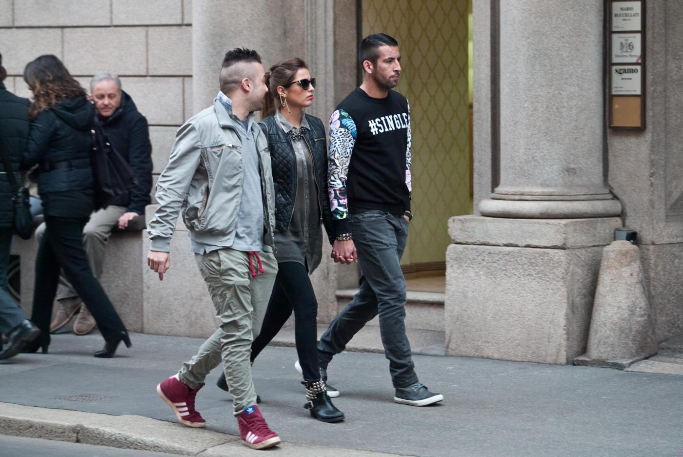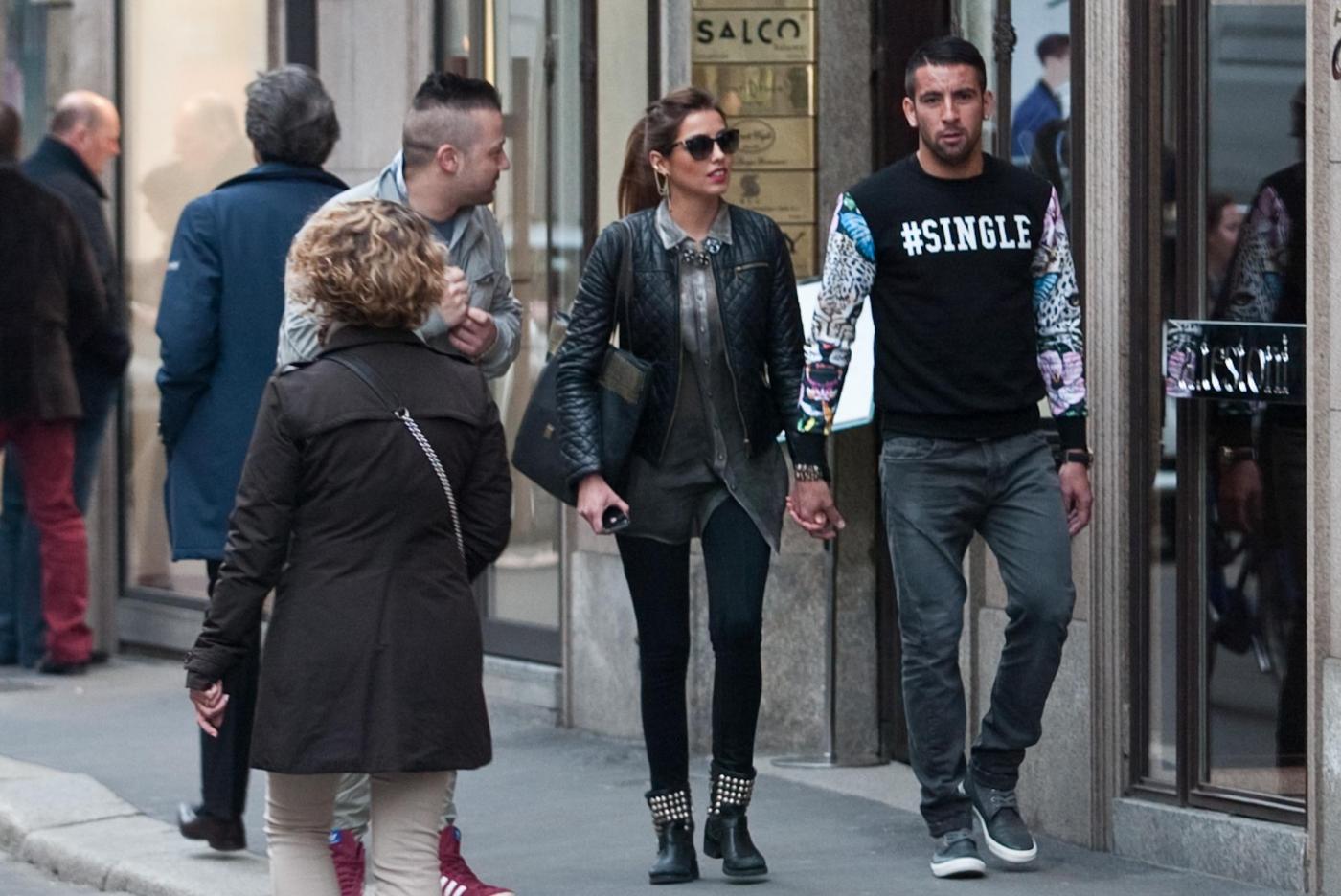 Sempre in Montenapoleone si è visto anche lo juventino Mauricio Isla con maglia con la scritta “Single”. Scelta insolita, dato che accanto a lui c’è la fidanzata Nataly ed anche Felipe Melo, paparazzato mentre passeggia con la signora Roberta e famiglia. Infine, nella via pià in voga a Milano, è stato immortalato anche il giocatore del Chievo Gennaro Sardo in compagnia della moglie Daniela (foto LaPresse)