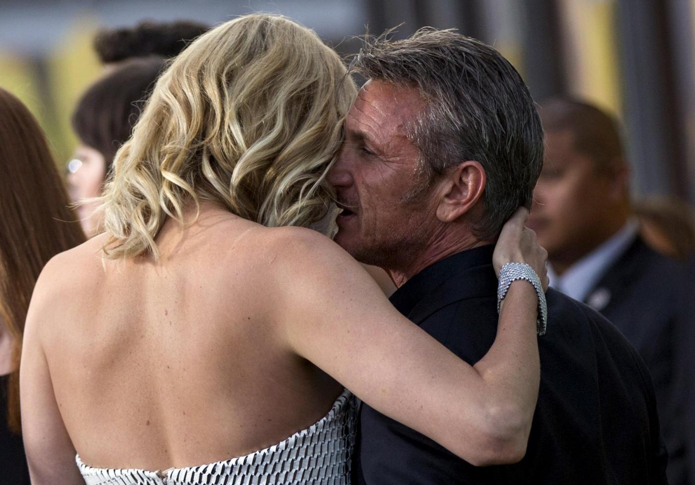 Cast member Charlize Theron and actor Sean Penn attend the premiere of "Mad Max: Fury Road" in Hollywood, California May 7, 2015. The movie opens in the U.S. on May 15. REUTERS/Mario Anzuoni