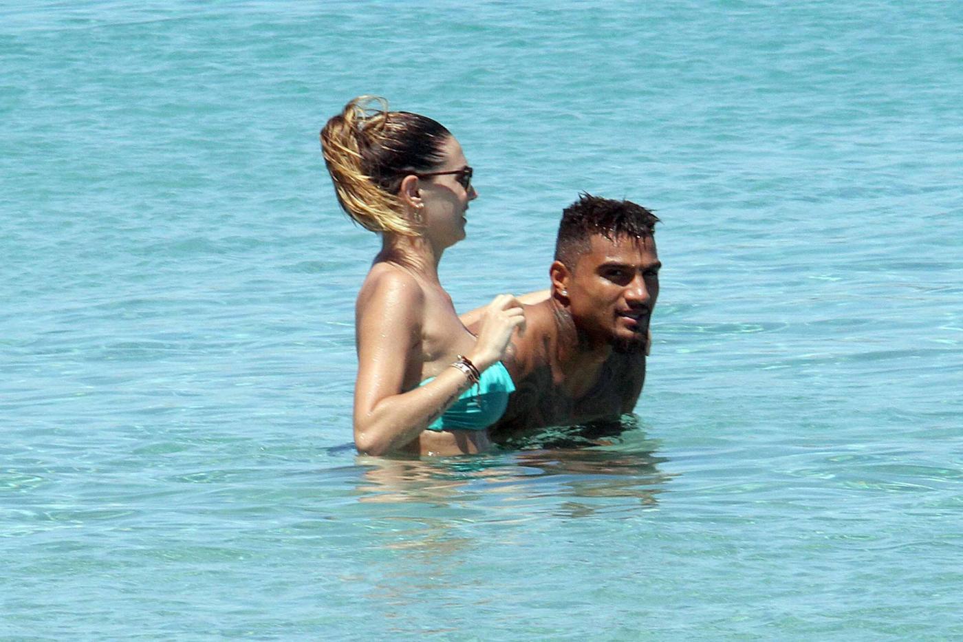 Foto Claudio Bernardi/LaPresse Porto Cervo, 06 luglio 2014 Melissa Satta in Sardegna con il suo K.P. Boateng, si concedono una giornata di sole e di mare e durante un bagno si abbandonano a coccole e affettuosità.Photo Claudio Bernardi / LaPresse Porto Cervo, July 6, 2014 Melissa Satta in Sardinia with his K.P. Boateng, are granted a day of sun and sea while taking a bath