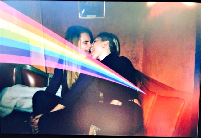 Miley Cyrus «lingua a lingua» con la modella Cara DelevingneMiley Cyrus «lingua a lingua» con la modella Cara Delevingne