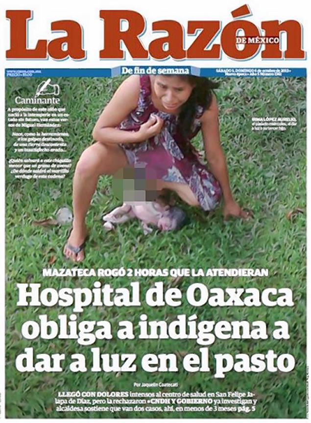 CITTÀ DEL MESSICO (MESSICO) – La foto di una madre che partorisce il figlio nel cortile di un ospedale, su un’aiuola, è apparso sulla prima pagina di un giornale messicano. Nella foto si vede come il cordone ombelicale di Irma Lòpez Aurelio sia ancora attaccato quando la foto è stata scattata nel cortile dell’ospedale di Oaxaca nella città di San Felipe Jalapa de Dìaz, scrive NY Daily News.