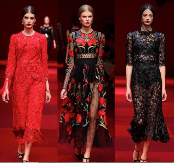Quella presentata dai due stilisti italiani è una collezione barocca, omaggio alla Sicilia più hispanica e colorita, terra mediterranea ricca di suggestioni.