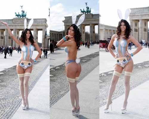 Ma questa non è la prima volta che la bella modella si fa fotografare quasi nuda, in tutta la sua grazia, per le strade di Berlino. Questa volta, in occasione del periodo di Pasqua, Micaela è protagonista di un sensuale bodypainting e si è fatta immortalare vestita (se così si può dire) da coniglietto… più che sexy, con il suo prosperoso seno “coperto” solo dalle orecchie sapientemente disegnate.
