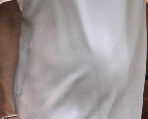 L’abito bianco comodo che indossa, lascia intravedere il pancino che cresce (foto LaPresse)