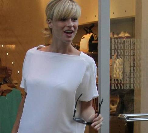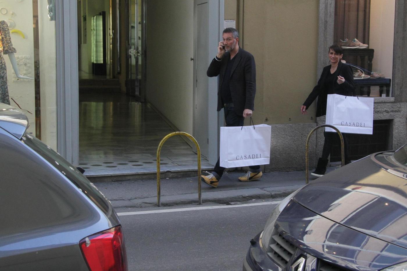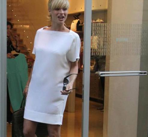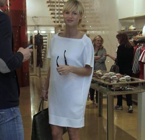 La showgirl, capelli legati e frangetta sulla fronte è in dolce attesa del secondo figlio dal compagno Tomaso Trussardi. A Milano è stata “‘paparazzata” mentre gira tra i negozi di Milano.