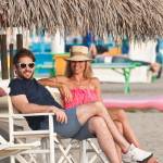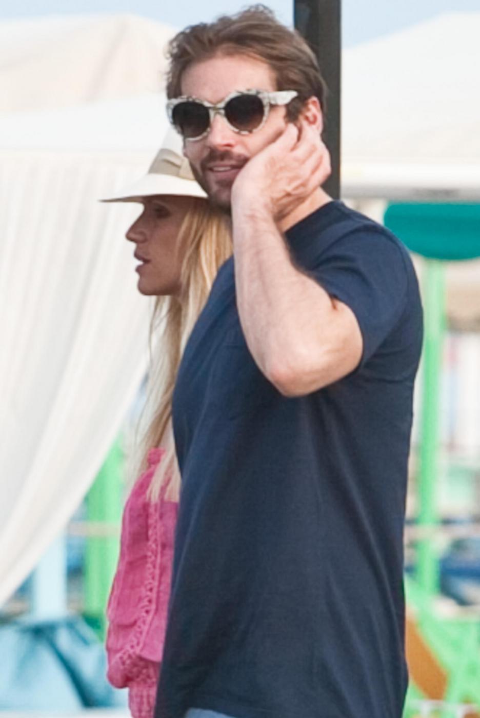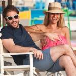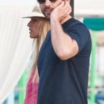 Per il suo pomeriggio al mare Hunziker ha scelto un outfit semplice e poco sofisticato: vestitino corto color corallo, più cappello di paglia e sandalo basso. Anche il look di Tomaso era piuttosto casual: pantaloncini grigi e t-shirt blu; tocco trendy l’occhiale beige, che però aveva tutta l’aria di essere stato preso in prestito dalla sua compagna, essendo un modello apparentemente femminile.