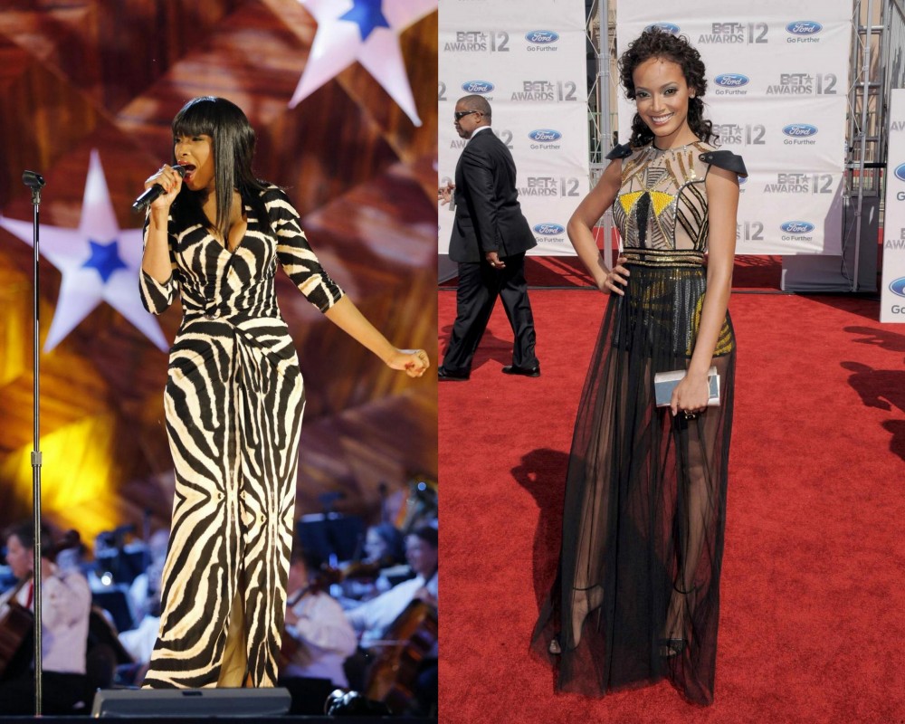 A sinistra: Jennifer Hudson in Roberto Cavalli A destra: Selita Ebanks in Falguni e Shane Peacock