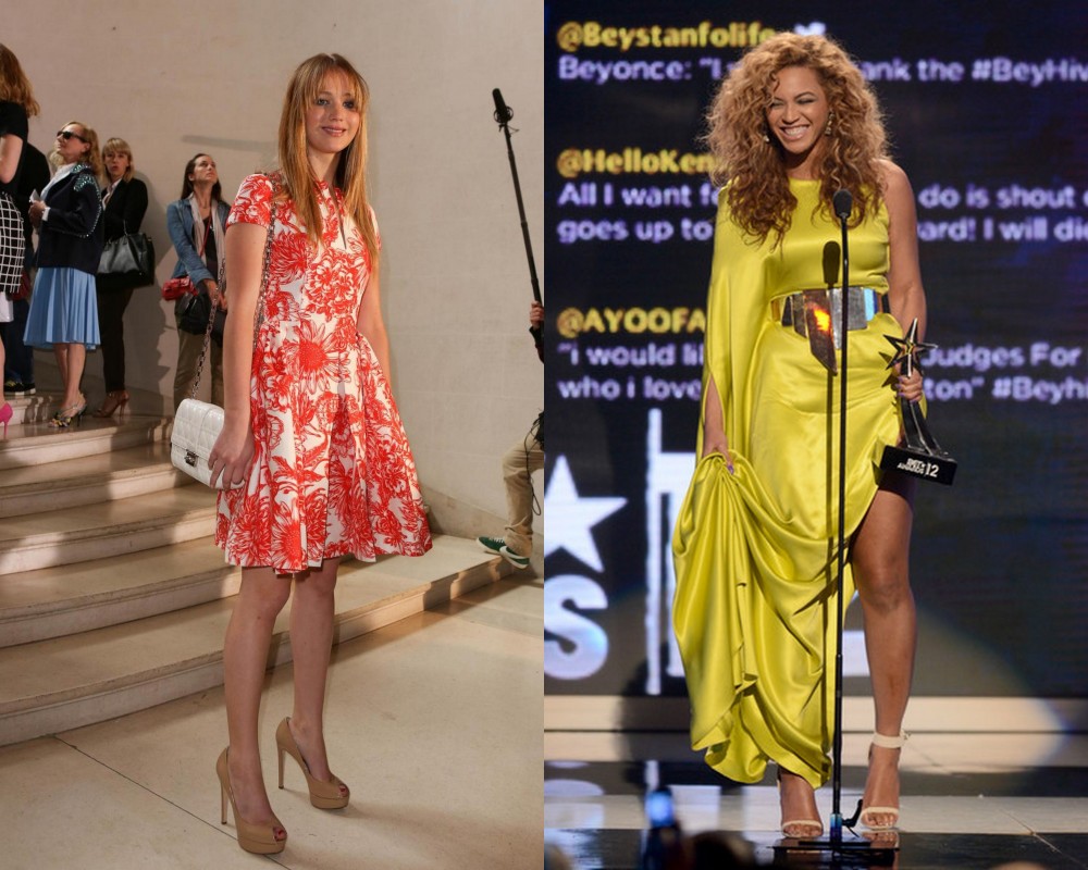 A sinistra: Jennifer Lawrence in Christian Dior A destra: Beyonce Knowles in Stéphane Rolland Couture