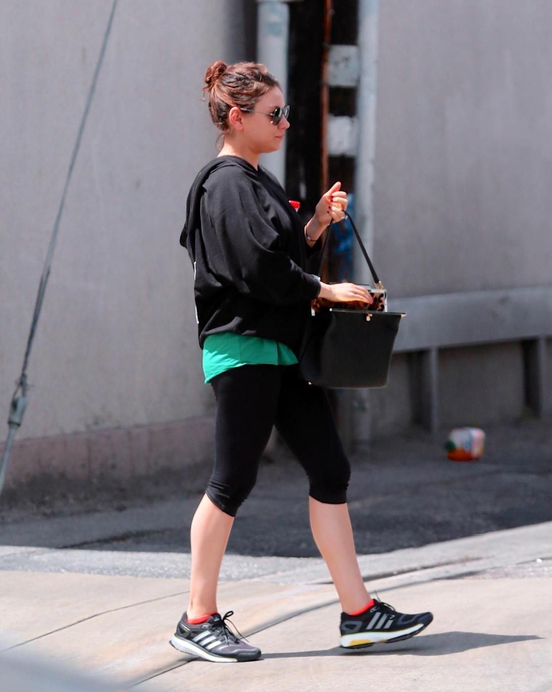 LOS ANGELES – Mila Kunis, incinta di qualche mese, non rinuncia alla palestra e qualche strappo alimentare nemmeno ora. L’attrice di origine ucraina, fidanzata da due anni con Ashton Kutcher, è stata fotografata all’uscita di una palestra di Los Angeles.