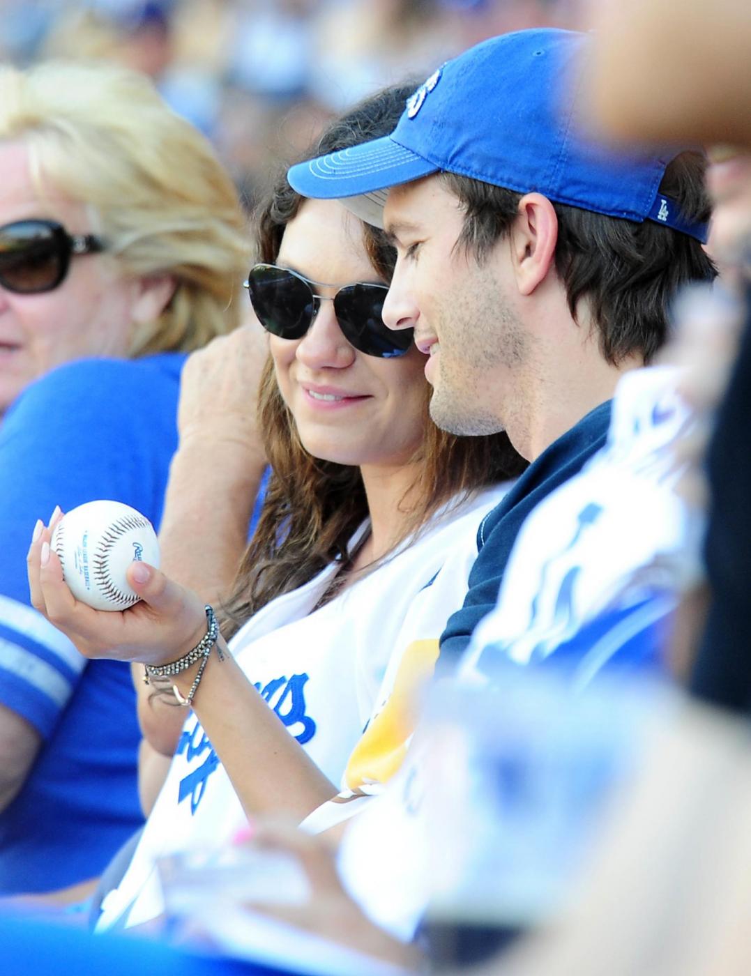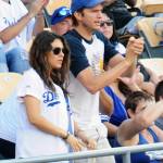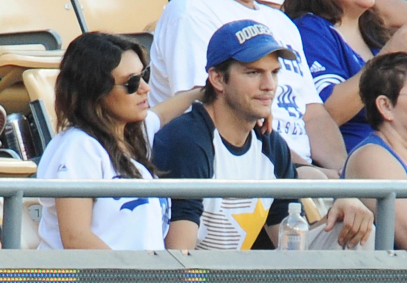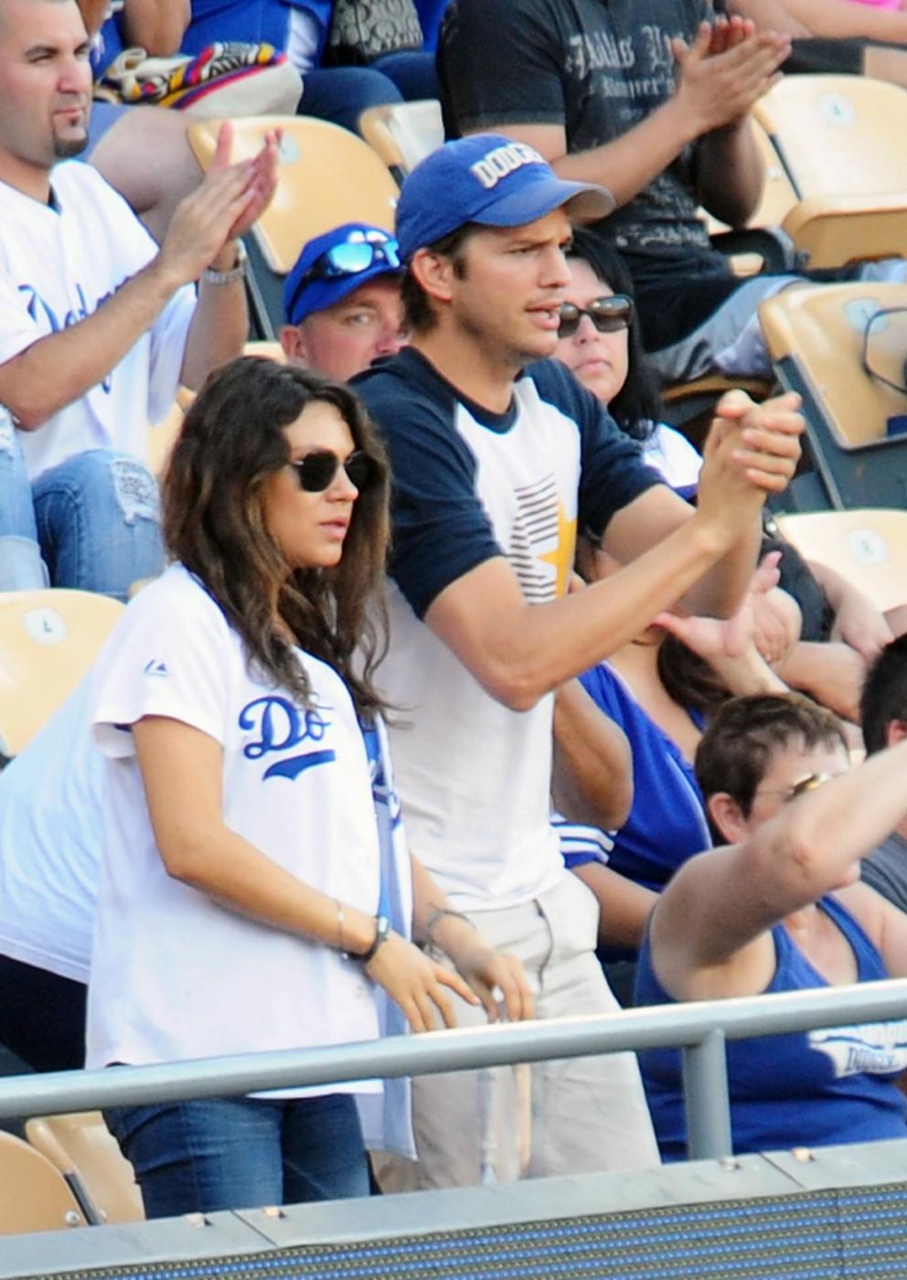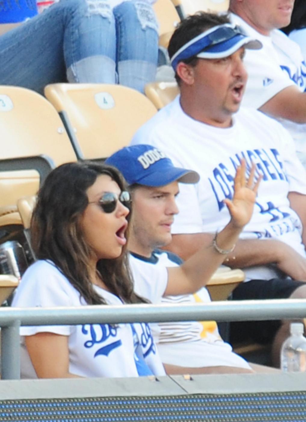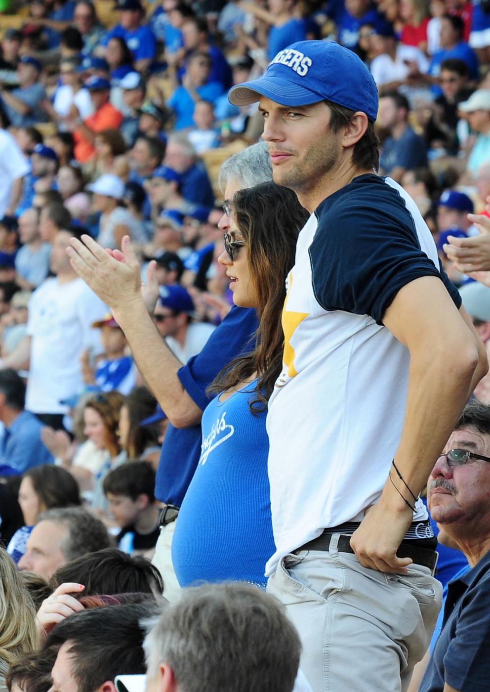 Mila Kunis and Ashton Kutcher take Mila's baby bump dressed in Dodgers blue to L.A. Dodgers baseball game against the Cardinals at Dodgers Stadium in Los Angeles Saturday June 28, 2014. It look as though Kunis scored a foul ball during the game while the two love-birds were flirting with each other.Job: 062914J4June 28th. 2014 Los Angeles, CANpg/LaPresseOnly ItalyMila Kunis and Ashton Kutcher take Mila's baby bump dressed in Dodgers blue to L.A. Dodgers baseball game against the Cardinals at Dodgers Stadium in Los Angeles Saturday June 28, 2014. It look as though Kunis scored a foul ball during the game while the two love-birds were flirting with each other.Job: 062914J4June 28th. 2014 Los Angeles, CANpg/LaPresseOnly Italy