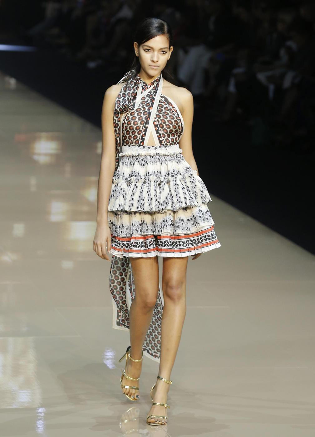 Sfilata Just Cavalli (Foto: La Presse)A model wears a creation for Just Cavalli women's Spring Summer 2015 collection, part of the Milan Fashion Week, unveiled in Milan, Italy, Thursday, Sept. 18, 2014. (AP Photo/Antonio Calanni)