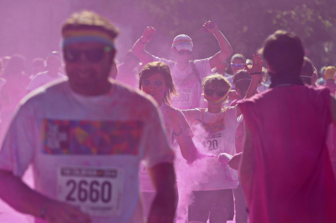 Partenza alle 16.30 per i partecipanti: tante le famiglie con bambini, gruppi di amici provenienti da tutto il nord Italia in diversi casi con il cane al seguito. Tutti sono arrivati al traguardo dipinti dalla testa ai piedi (foto LaPresse)