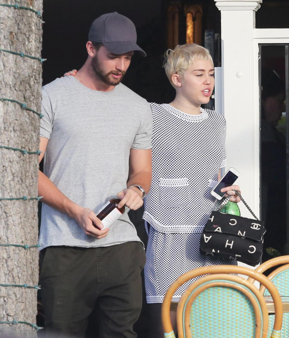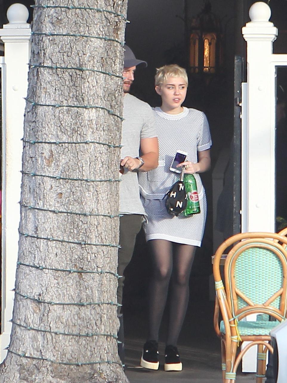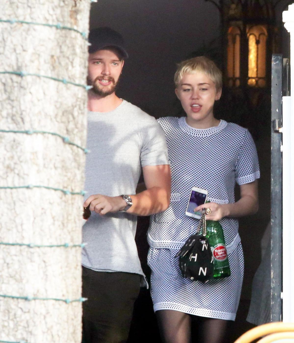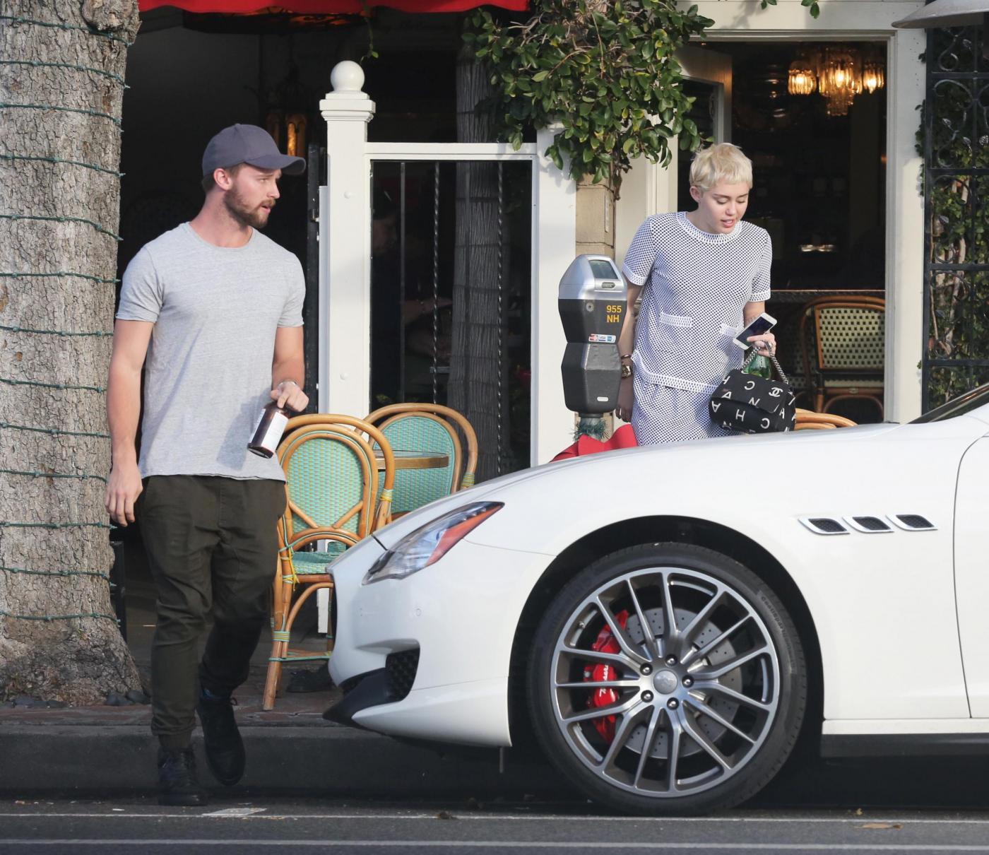 Miley Cyrus con i capelli color platinoA newly bleached Miley Cyrus and Patrick Schwarzenegger leave lunch a healthy restaurant looking cozy. Today a picture has surfaced that shows Miley Cyrus surrounded by what appear to be drugs and paraphernalia at a recording studio. As the leave, Patrick drives Miley's 140,000 Maserati that was stolen last year X17online.comLaPresse -- Only Italy