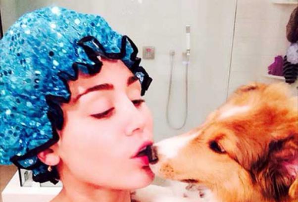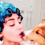 Negli scatti pubblicati c’è la cantante che fa la doccia con in braccio il cane mentre lo bacia sul naso. In un altro scatto, il cane sta accanto a lei nel letto.