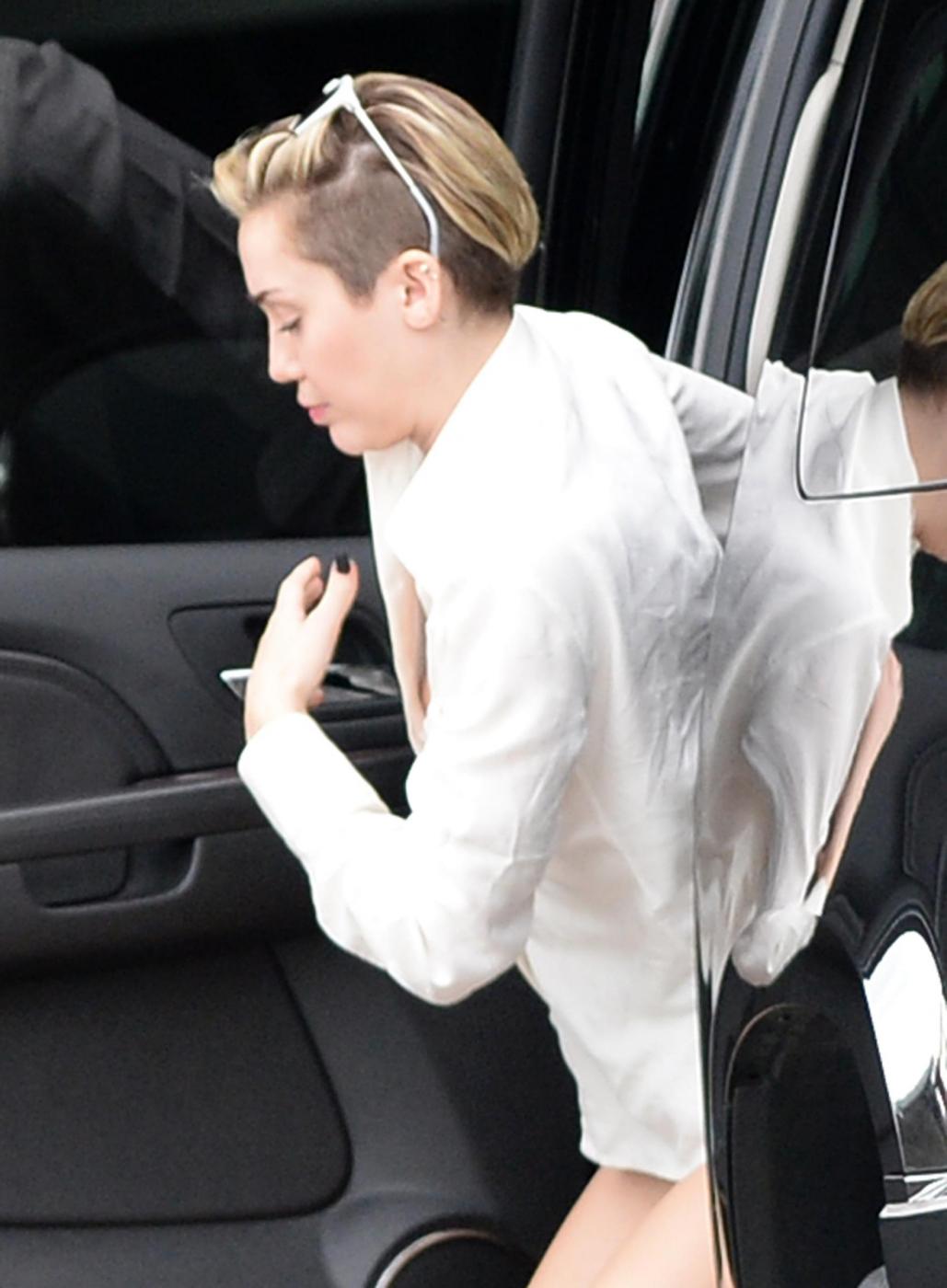 MIAMI – Miley Cyrus scende dall’auto a Miami. La ex star di Disney non indossa il reggiseno, sfodera una camicia bianca a maniche lunghe e dei minuscoli shorts.
