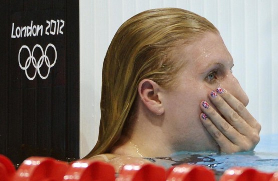 Rebecca AdlingtonBritain's Rebecca Adlington checks her time after competing in a women's 800-meter freestyle swimming heat at the Aquatics Centre in the Olympic Park during the 2012 Summer Olympics in London, Thursday, Aug. 2, 2012. (AP Photo/Mark J. Terrill) Only Italy -- LaPresse --