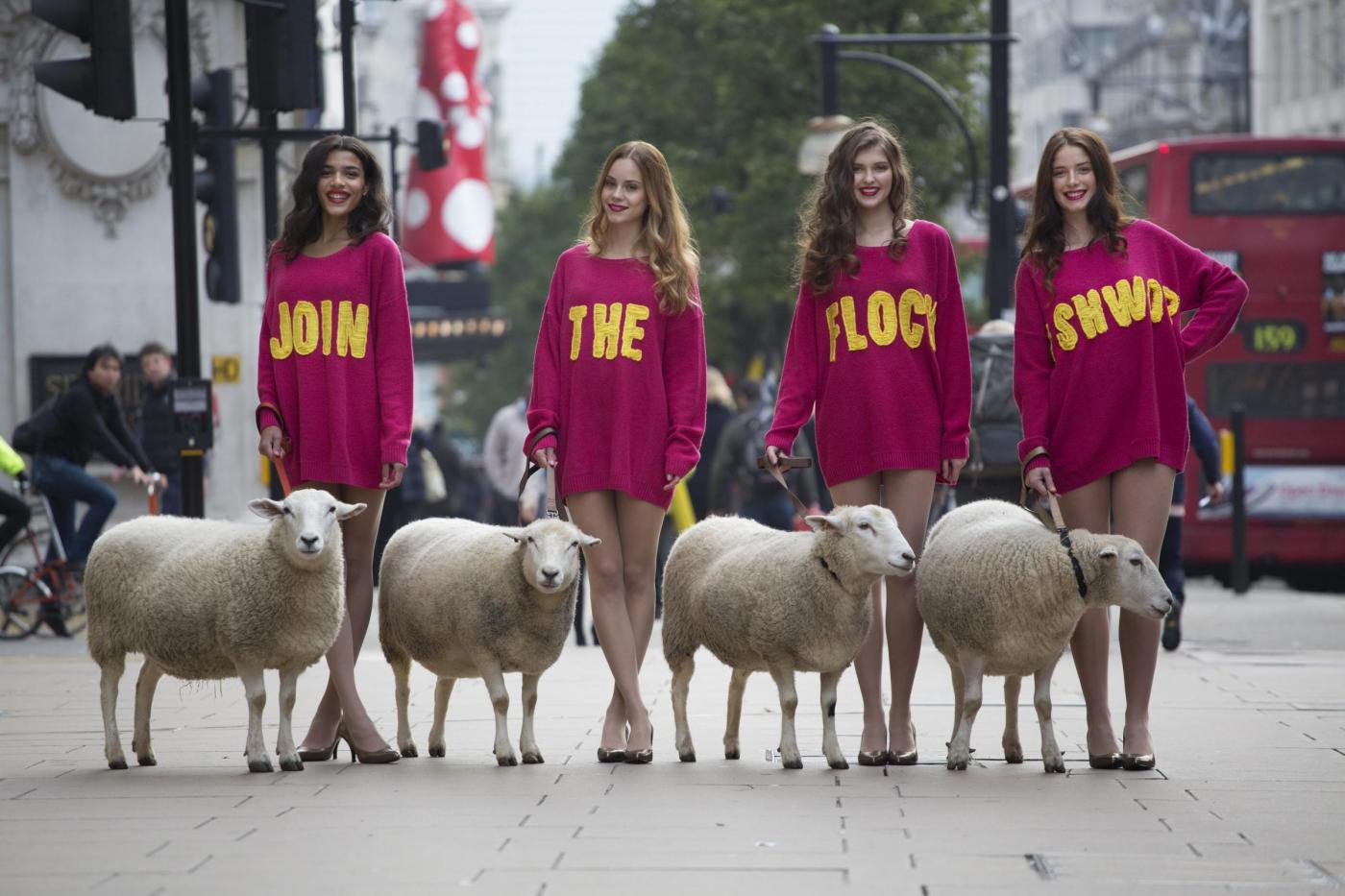 LONDRA – Lo store inglese Marks & Spencer ha organizzato una campagna per promuovere l’utilizzo della lana nella vita quotidiana. In Oxfort Street, la via londinese in cui si trova uno dei negozi Marks & Spencer, alcune modelle hanno posato mentre portano al guinzaglio delle pecore.