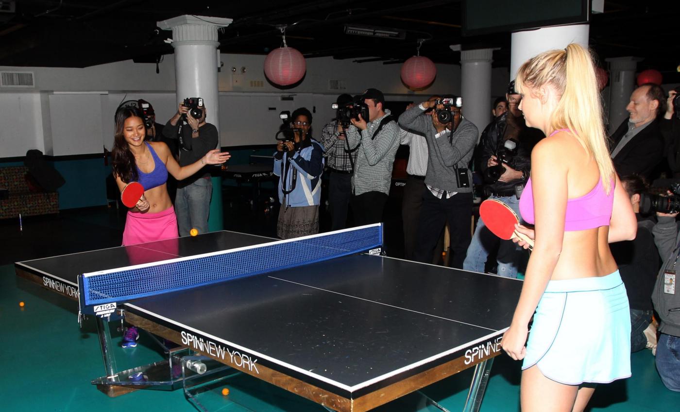 Sports Illustrated Swimsuit Models Genevieve Morton and Jarah Mariano face each other in a friendly game of Ping-Pong at SPiN New York, Susan Sarandon's Ping-Pong social club in the Flatiron District in New York, NY on February 21, 2013.The swimsuit models will deliver the ceremonial first tennis ball at the upcoming BNP Paribas Showdown featuring Rafael Nadal, Serena Williams, Victoria Azarenka and Juan Martin del Potro at Madison Square Garden on Monday, March 4th.Photo by Charles Guerin/ABACAUSA.COM LaPresseOnly Italy