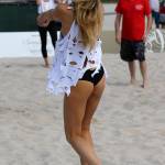 February 20, 2014: Sports Illustrated Swimsuit Edition "rookie" model Samantha Hoopes competes in a charity volleyball tournament with famous chefs as part of the South Beach Wine and Food Festival In Miami Beach, Florida. Samantha commanded the attention of the press by cutting up her shirt and wearing a cheeky bikiniy bottom.Mandatory Credit: INFphoto.com Ref: infusmi-11/13|sp| LaPresseOnly Italy