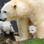 MONACO (GERMANIA) – Allo zoo di Hellabrunn a Monaco in Germania, la mattina del 19 marzo sono stati presentati per la prima volta al pubblico due gemelli di orso polare. Si tratta di una femmina e un maschio nati lo scorso dicembre da mamma Giovanna, 7 anni, e papà Yoghi, 14 anni.