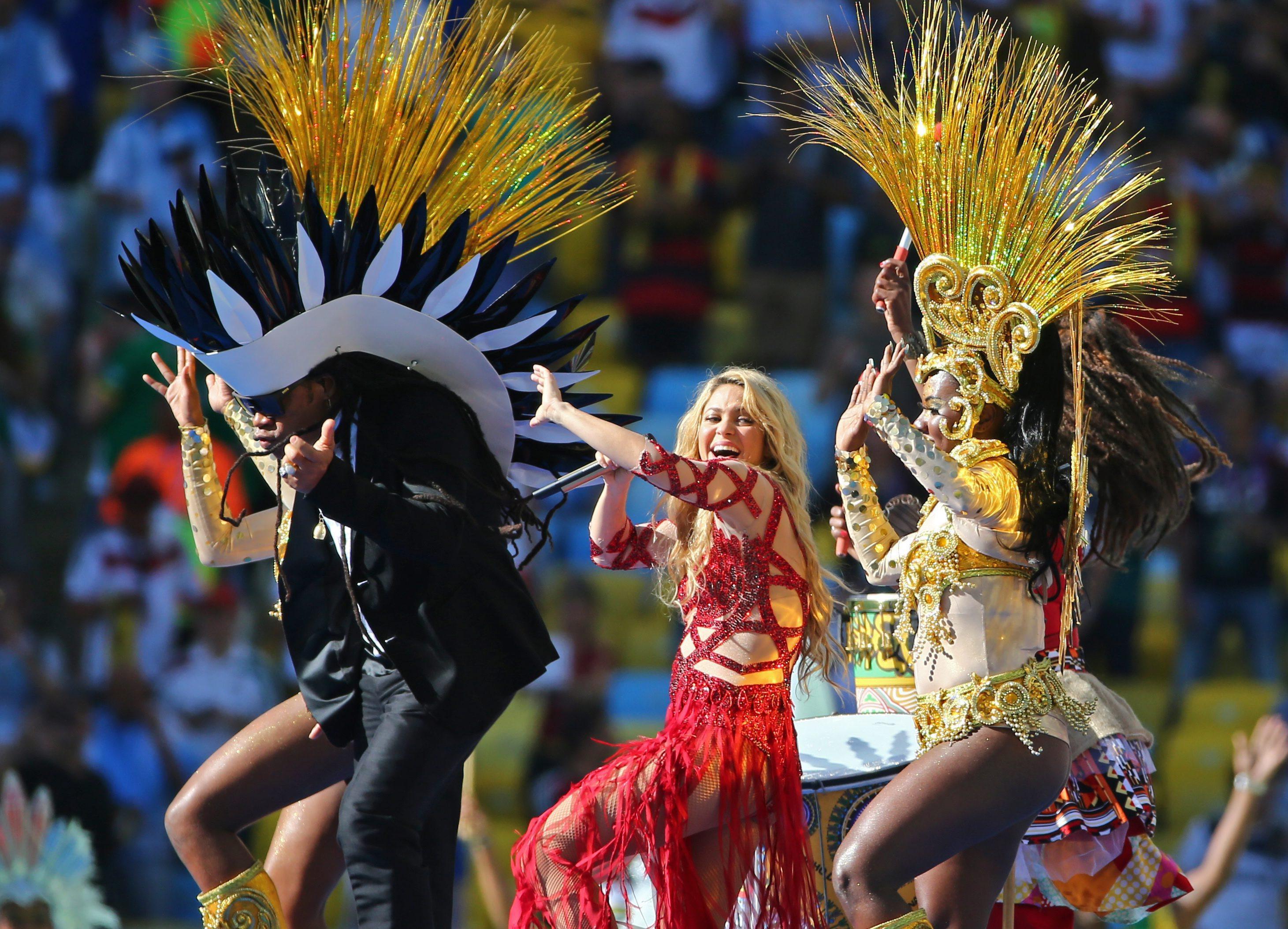 Foto: Ansaepa04315125 Brazilian musician Carlinhos Brown (L) and Colombian singer Shakira (C) perform during the Closing Ceremony prior to the FIFA World Cup 2014 final between Germany and Argentina at the Estadio do Maracana in Rio de Janeiro, Brazil, 13 July 2014. (RESTRICTIONS APPLY: Editorial Use Only, not used in association with any commercial entity - Images must not be used in any form of alert service or push service of any kind including via mobile alert services, downloads to mobile devices or MMS messaging - Images must appear as still images and must not emulate match action video footage - No alteration is made to, and no text or image is superimposed over, any published image which: (a) intentionally obscures or removes a sponsor identification image; or (b) adds or overlays the commercial identification of any third party which is not officially associated with the FIFA World Cup) EPA/DIEGO AZUBEL EDITORIAL USE ONLY