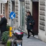 L’attrice 49enne è stata fotografata in look total black mentre esce dalla casa della giornalista Sky. Una sosta, forse, decisa tra un appuntamento della fashion week milanese e l’altro.
